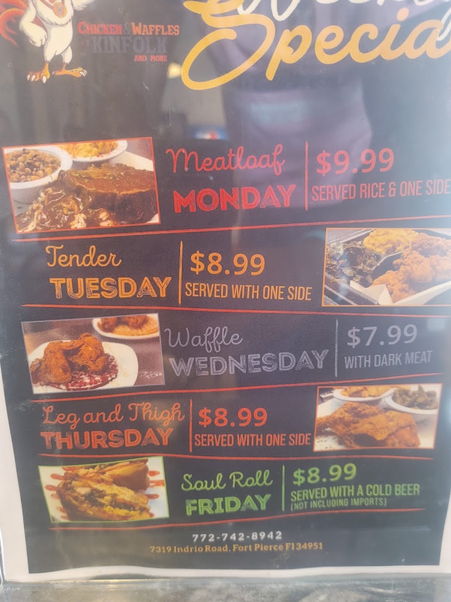 4 Pieces of Fried Chicken Rolls filled with yellow rice, greens, mac and fried chicken with signature dipping sauce.